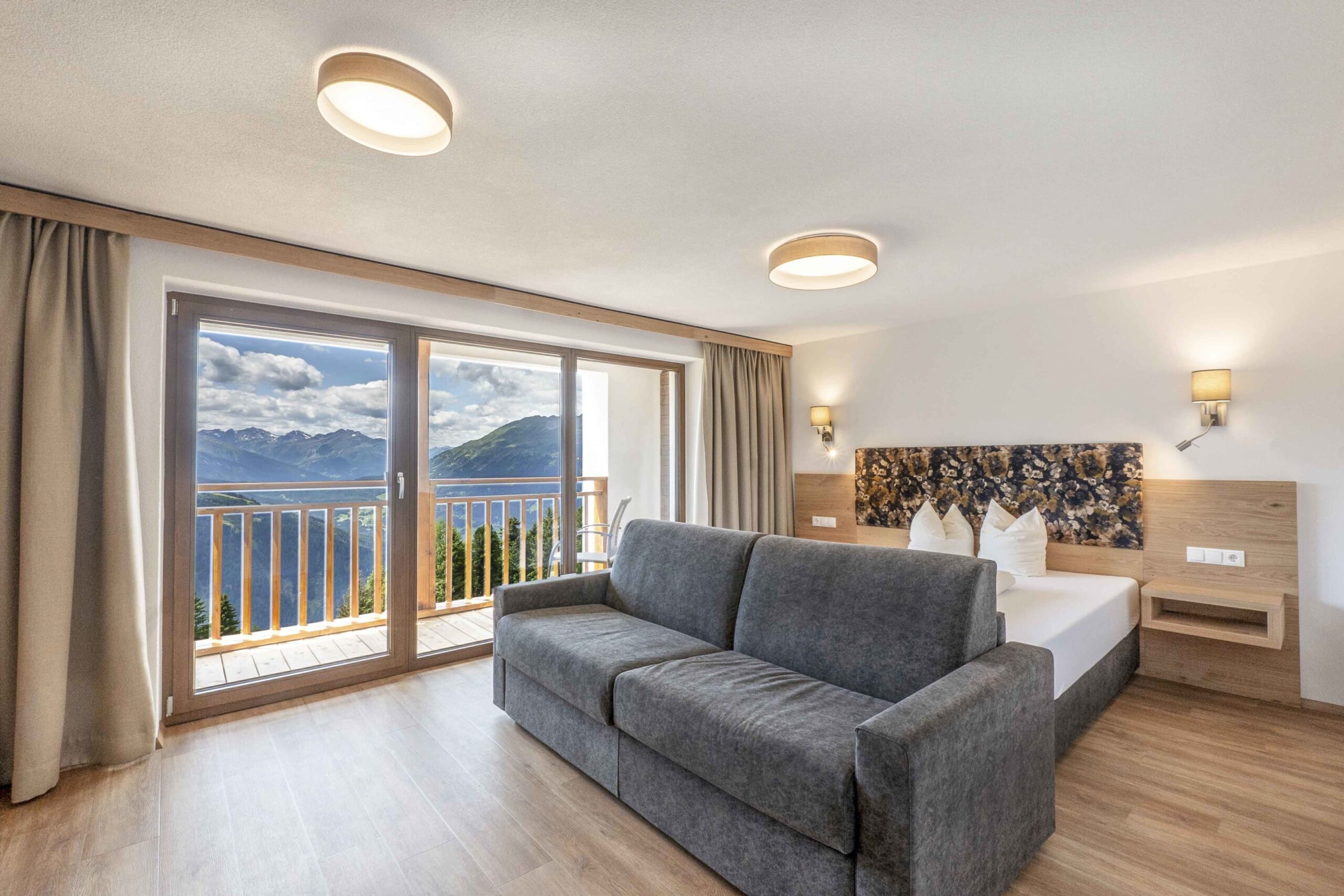 Charmant logieren mit Panoramablick ins Tal und in die Alpen.